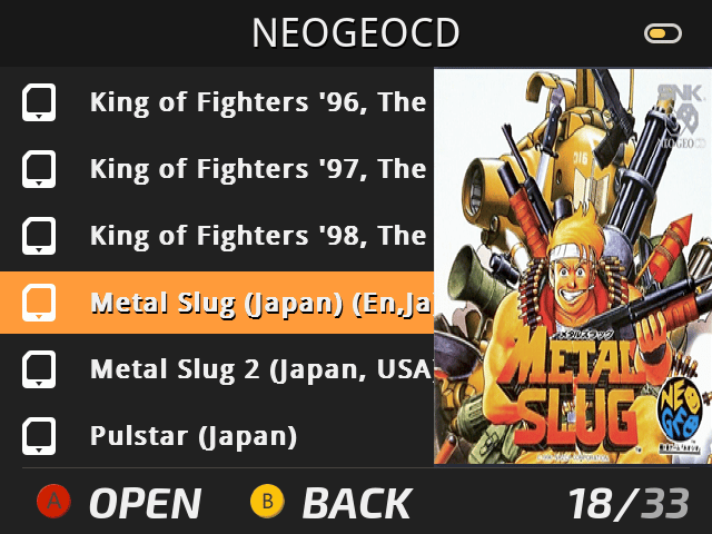 This 128GB SD Card includes the latest version of OnionOS (v4.3) and box art images for literally every game, including more than 40 Nintendo DS, 100 Playstation, 55 ScummVM, 20 Ports and 150 SNES games and many more CD system games like NEO GEO CD, PC ENGINE CD, SEGA CD, and much more.